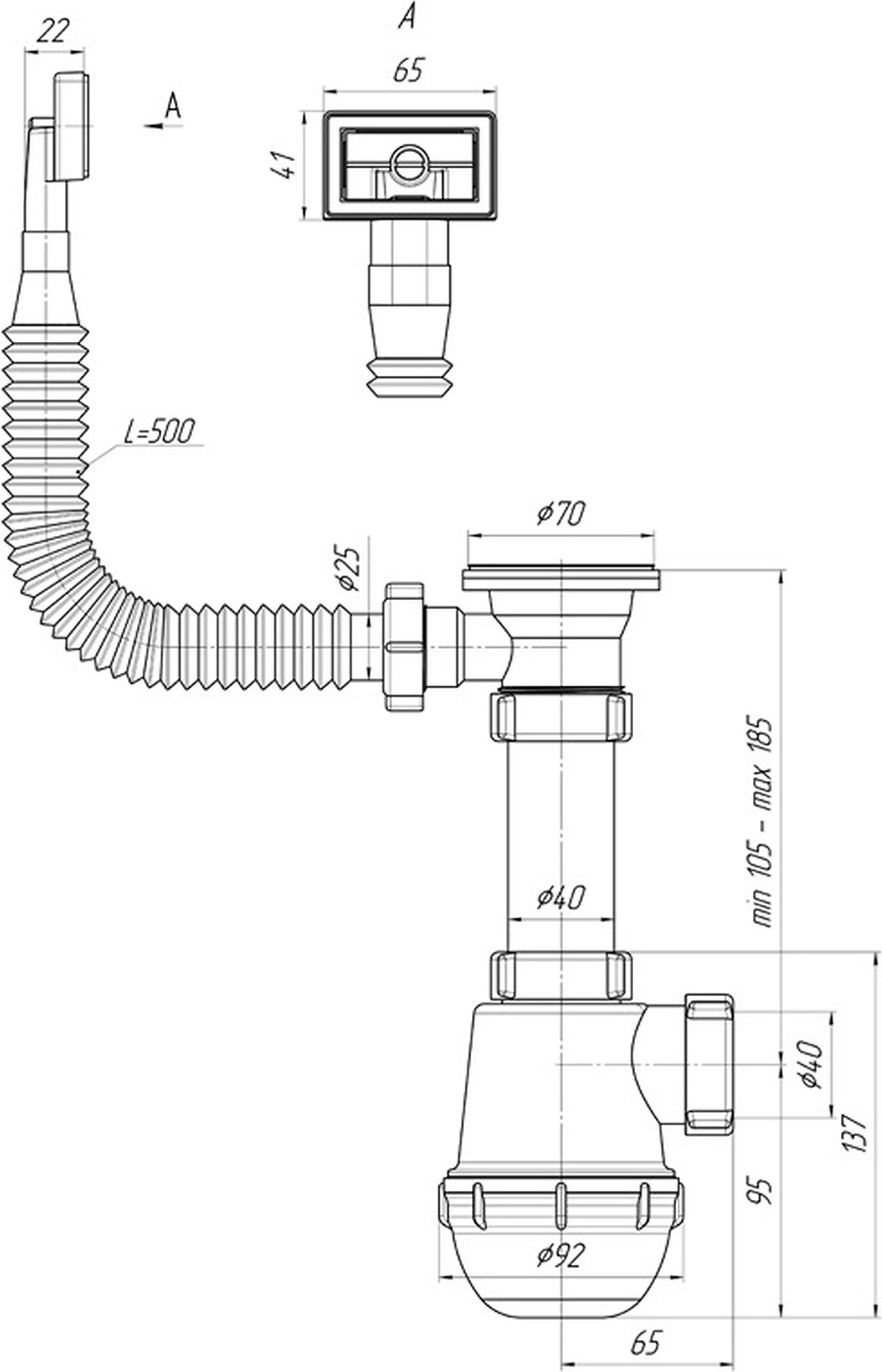Сифон для мойки АНИ Пласт 1 1/2" 40 мм со сливом-переливом