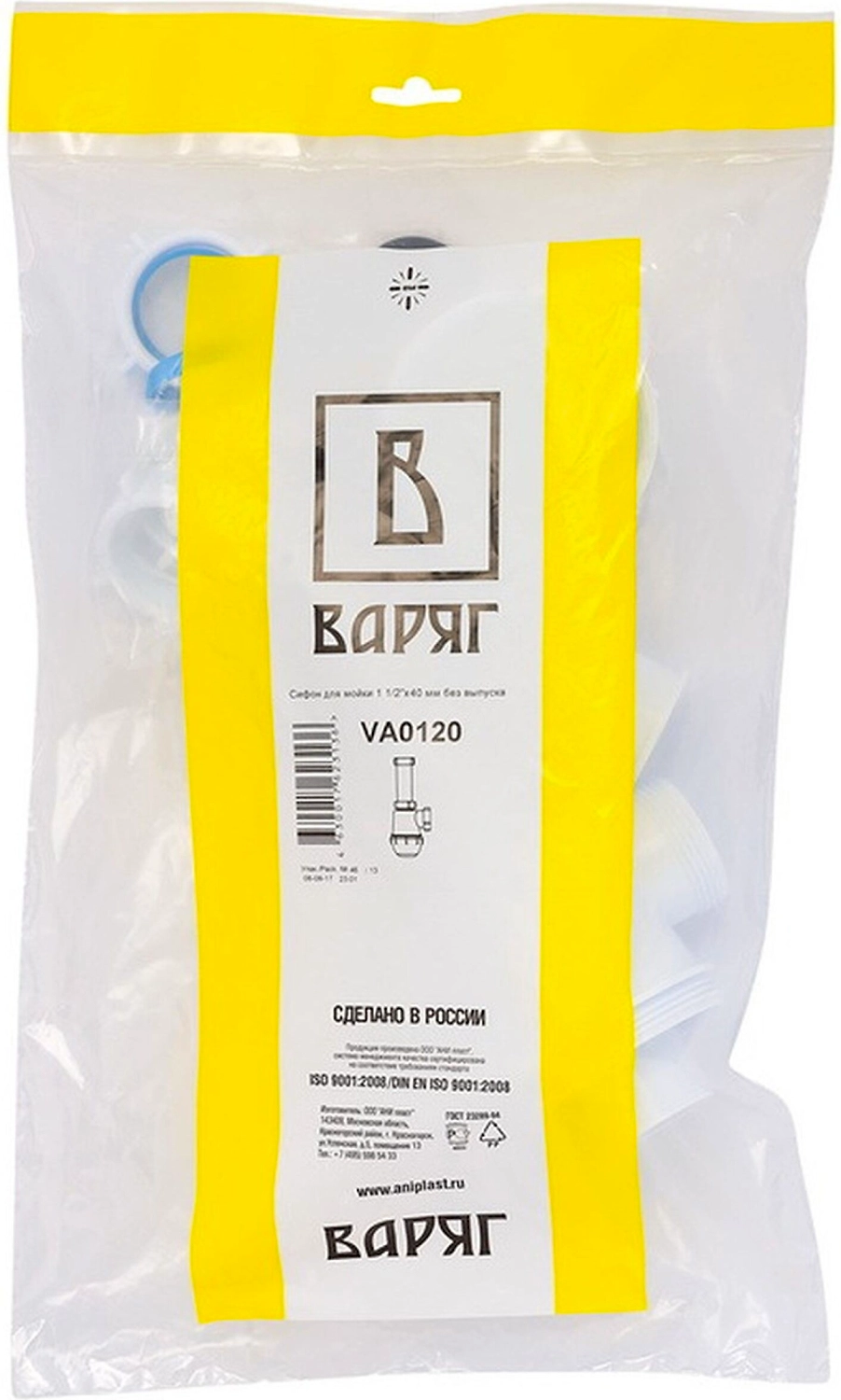 Сифон для мойки АНИ Пласт Варяг 1 1/2" 40 мм