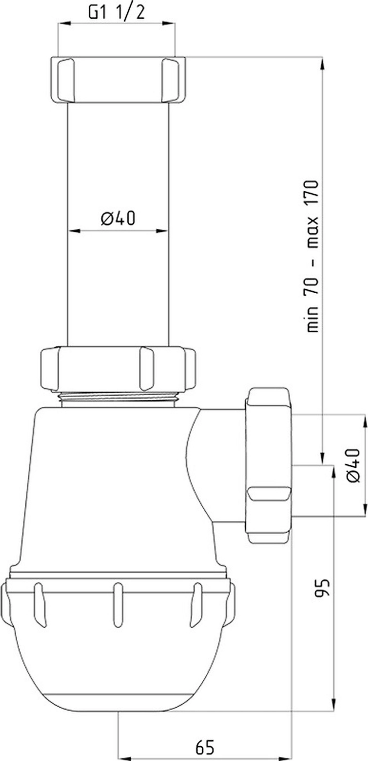 Сифон для кухонных моек бутылочного типа с увеличенным корпусом. Без выпуска.