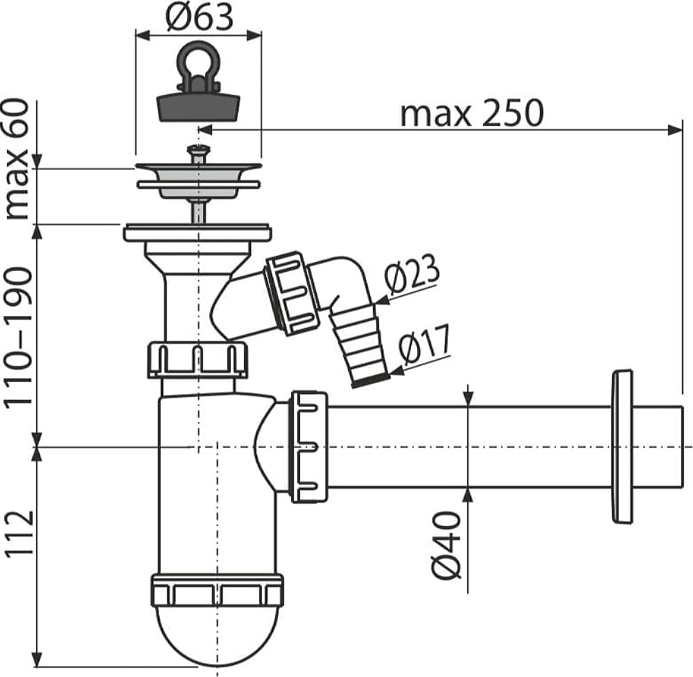 Сифон для раковины AlcaPLAST A41P 60 мм 40 мм