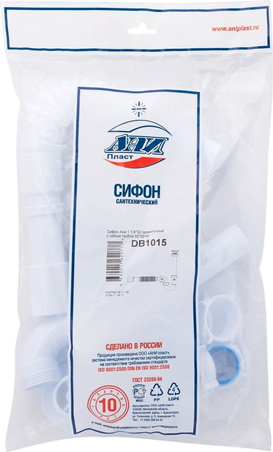 Сифон для раковины АНИ Пласт 1 1/4" 32 мм с гибким отводом