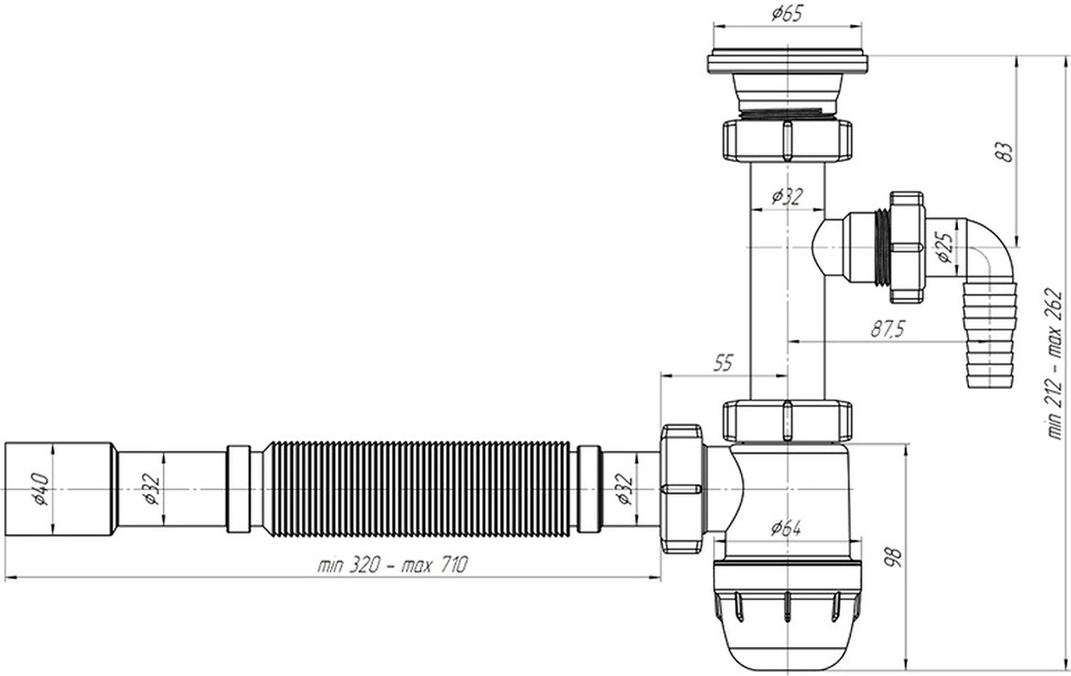 Сифон для раковины АНИ пласт 1 1/4" 32 мм с отводом