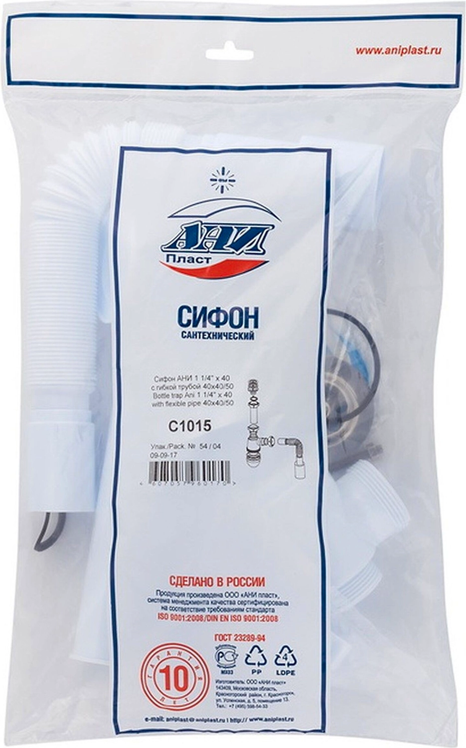 Сифон для раковины АНИ Пласт 1 1/4" 40 мм