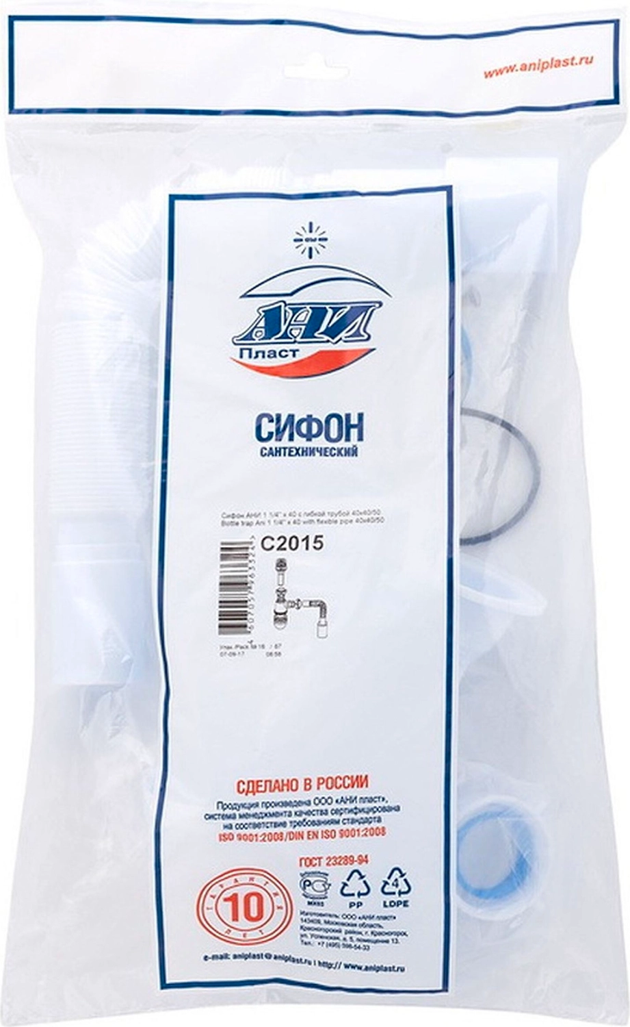 Сифон для раковины и мойки АНИ Пласт 1 1/4" 40 мм