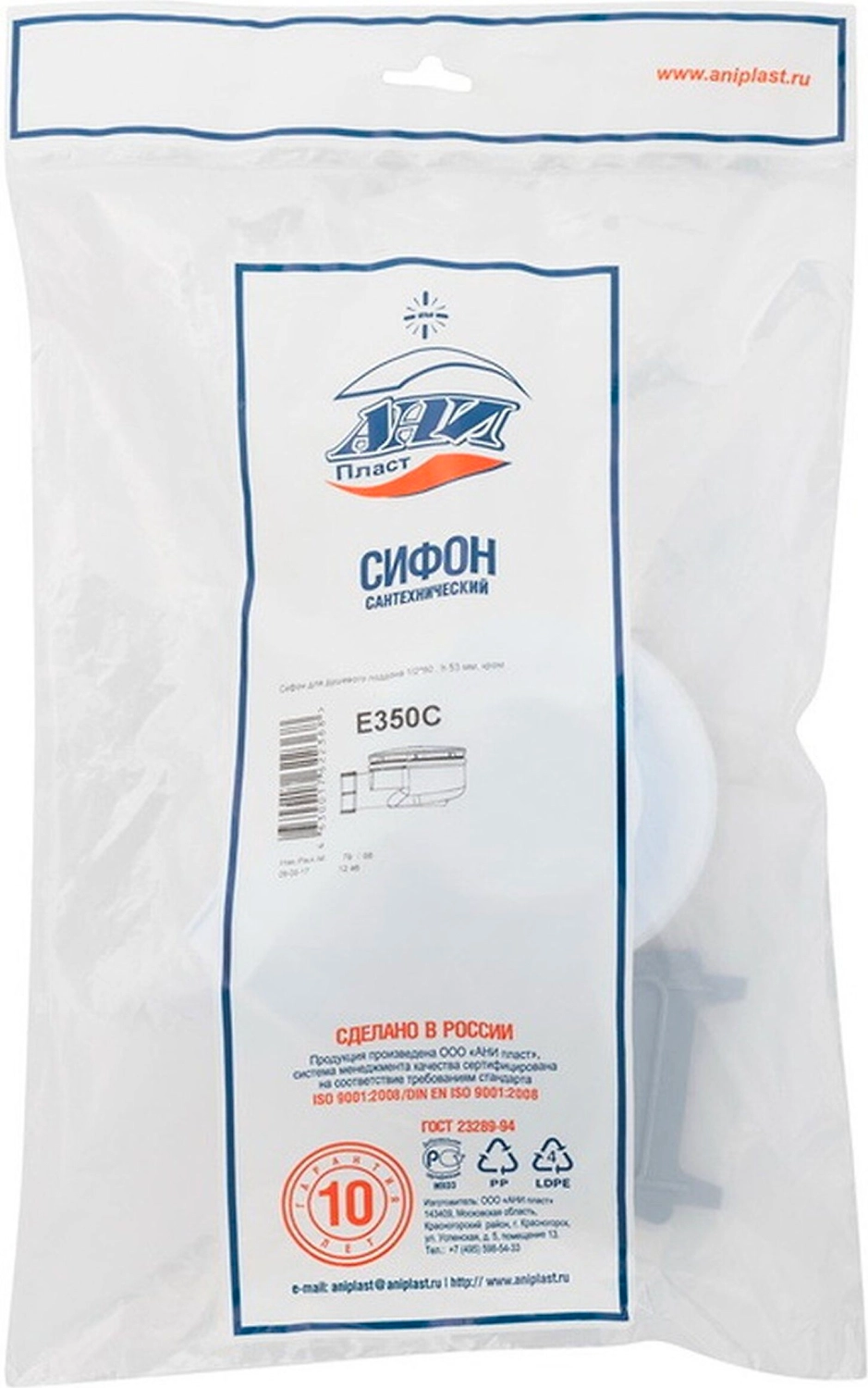Сифон для душевого поддона АНИ Пласт 1 1/2" 40 мм 90 мм