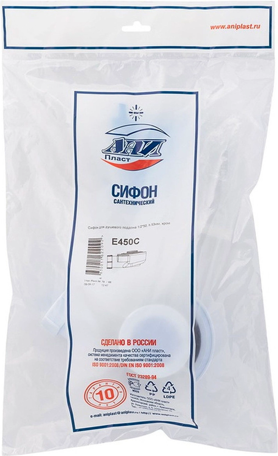 Сифон для душа АНИ Пласт 1 1/2"х40 D50 H53 применяется в душевых кабинах и позволяет сливать воду в канализацию со стабильно высокой скоростью.