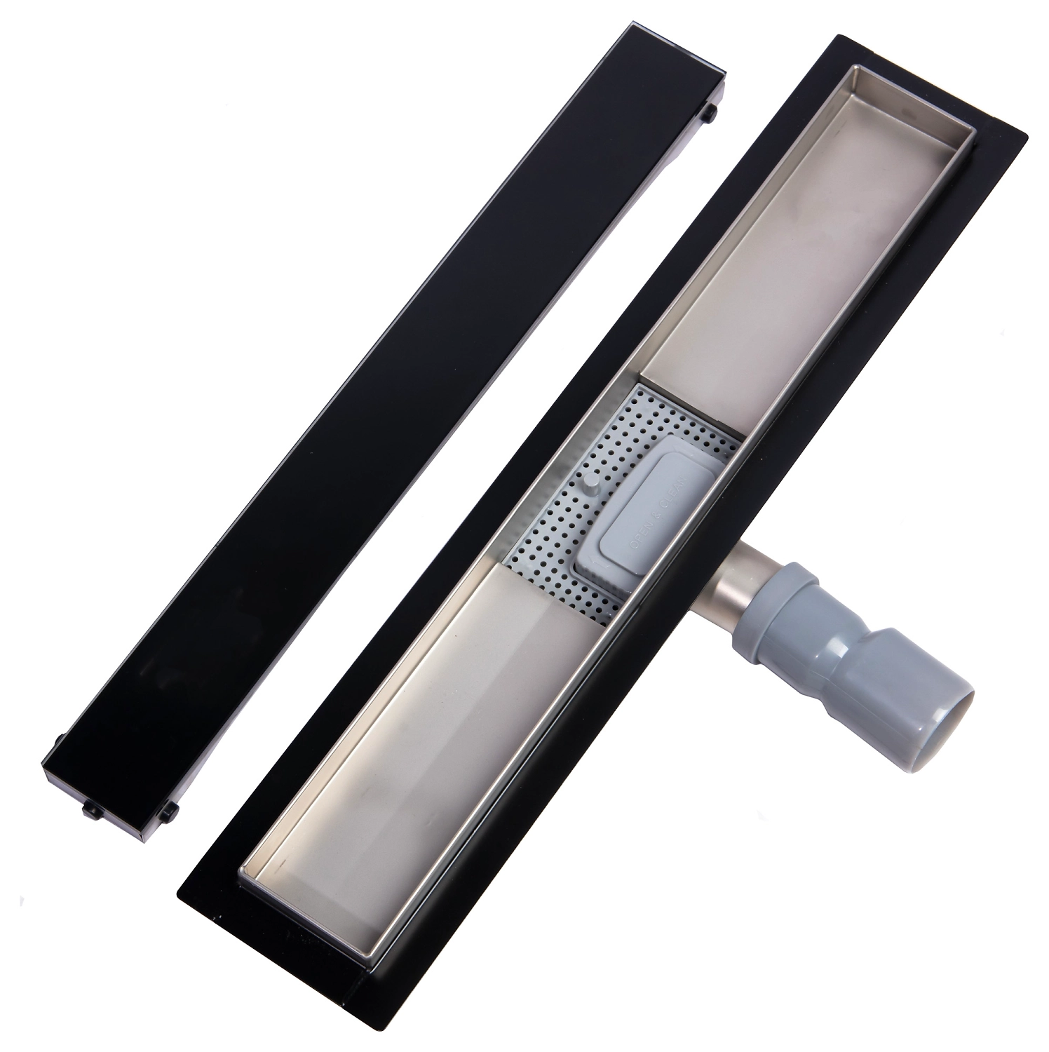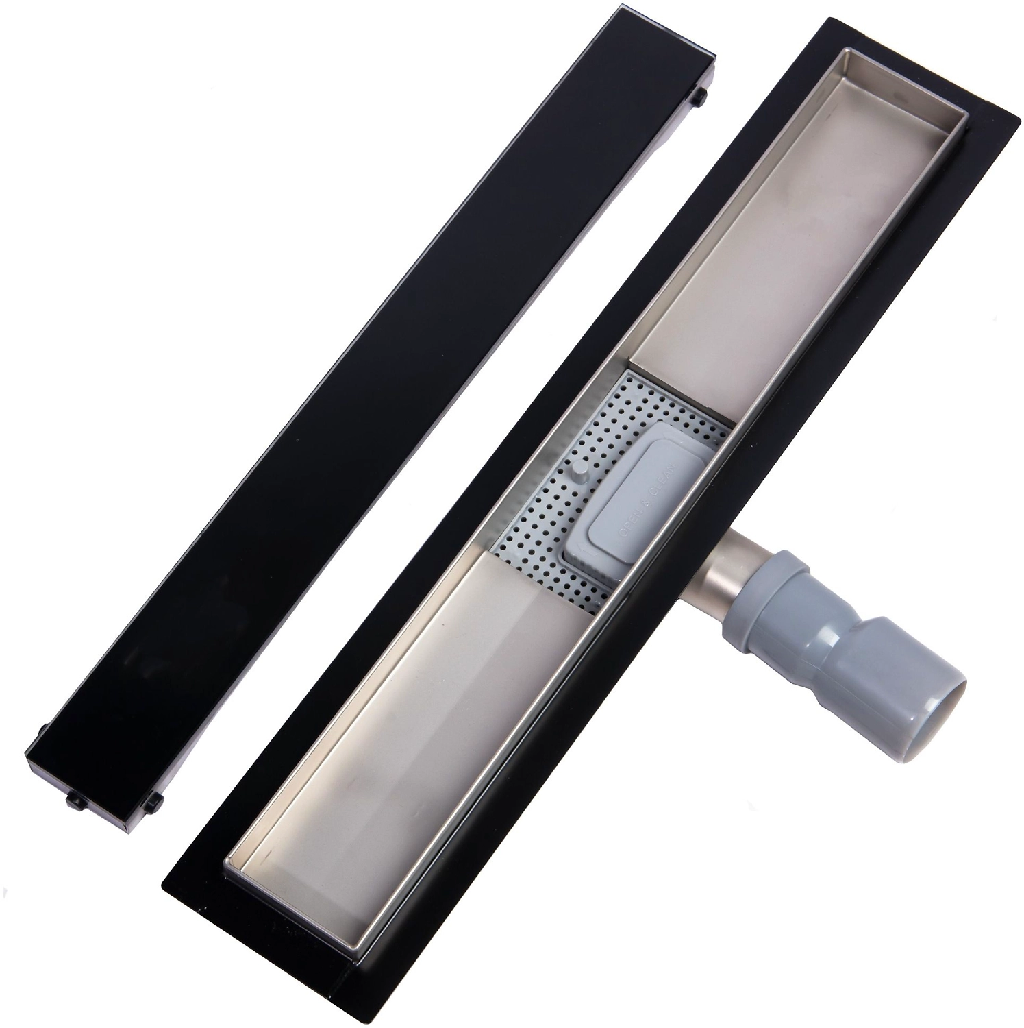 Слив щелевой для душевой кабины из нержавеющей стали 500х70х40 мм с покрытием закаленным стеклом 6 мм. Выход 40 мм, в комплекте с переходником на 50 мм.