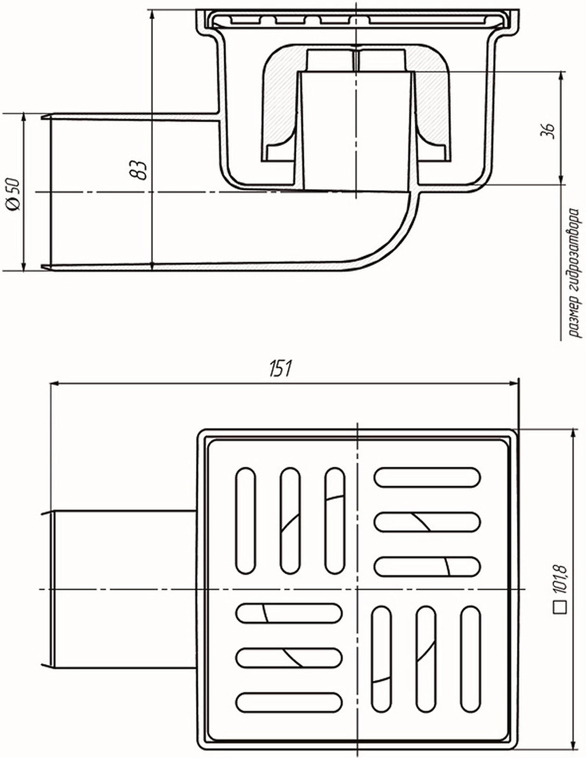 Трап не регулируемый с горизонтальным выпуском, с гидрозатвором предназначен для отвода воды с поверхности пола в систему канализации.
