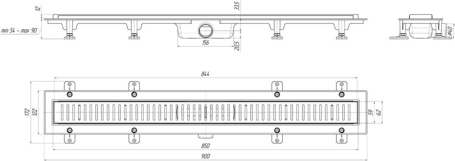 Трап водоотводный для душевого поддона АНИ Пласт Бимс 850х62 мм