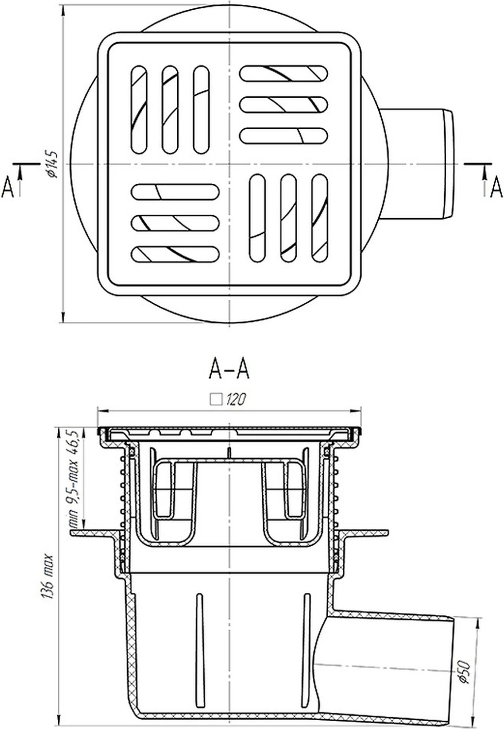 Трап регулируемый с горизонтальным выпуском и сухим затвором предназначен для отвода воды с поверхности пола в систему канализации.