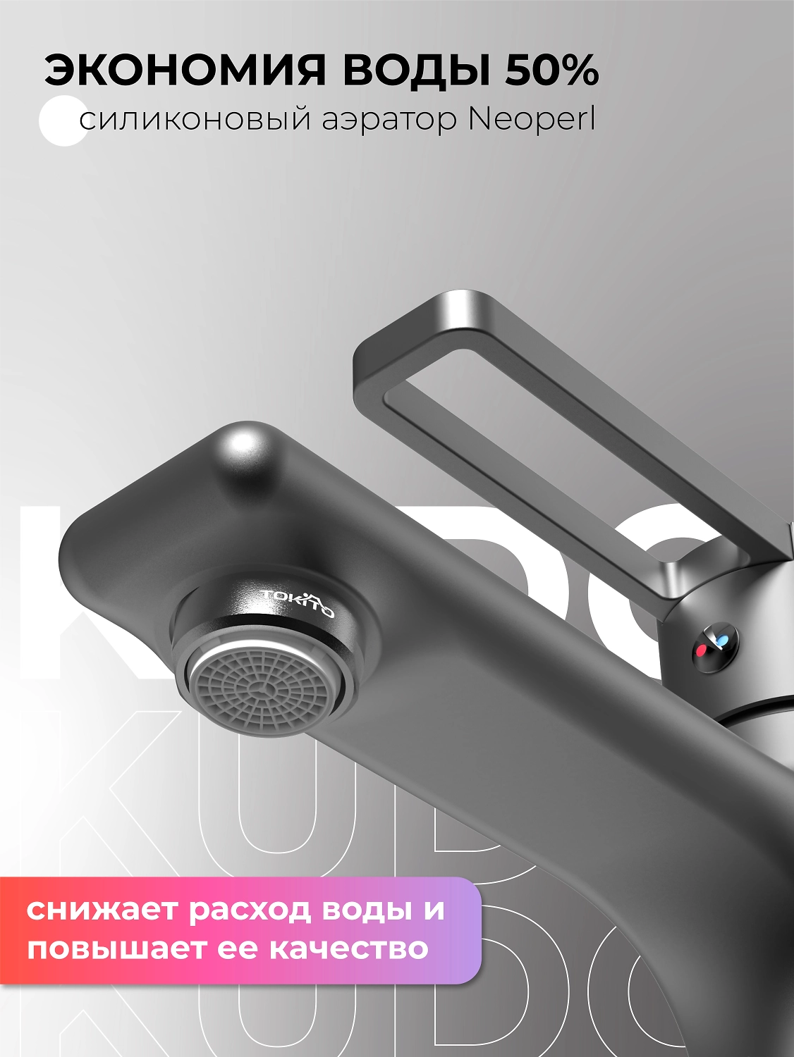 Смеситель для раковины серии KUDO от японского производителя TOKITO идеально сочетается с различным декором и материалами.