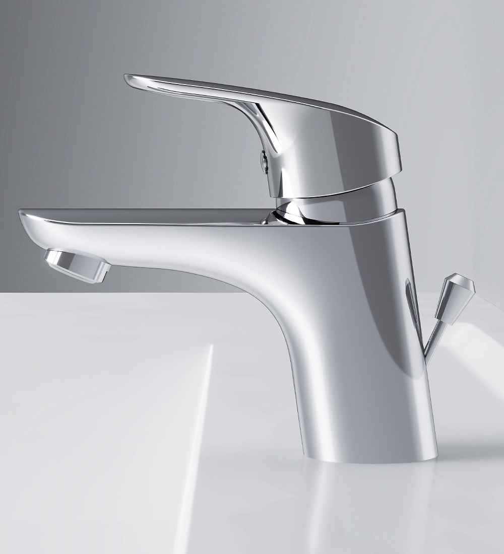 - Обширная зона движения рычага обеспечивает точную регулировку температуры и мощности подачи воды.