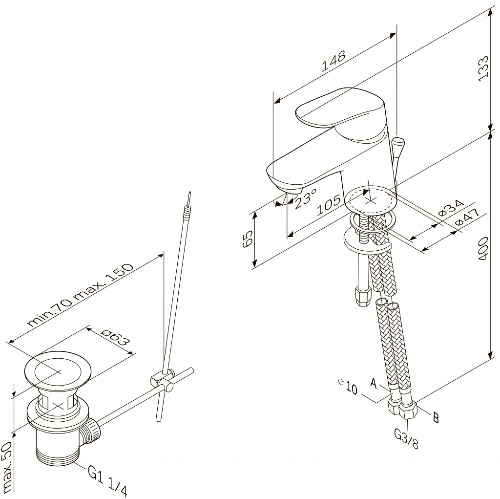 Смеситель устанавливается на поверхность раковины или столешницы в одно монтажное отверстие. Подключается к гибкой подводке стандарта 3/8.