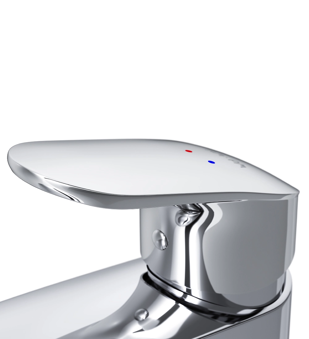 - Рычаг с обширной зоной движения позволяет комфортно и точно настраивать температуру и мощность подачи воды.