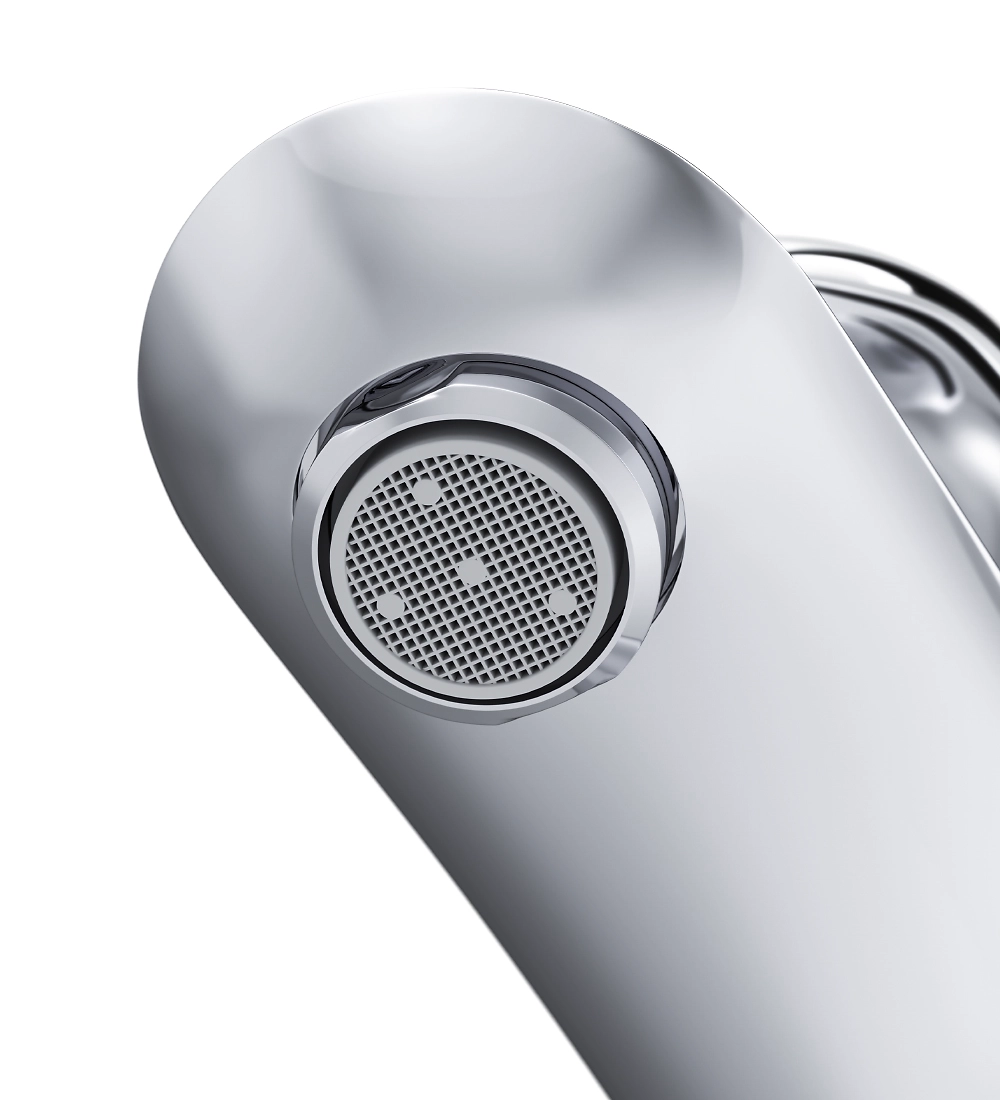 - Аэратор насыщает струю воды воздухом, уменьшает количество брызг, а благодаря функции Rub-and-Clean очищается от загрязнений одним движением пальца.