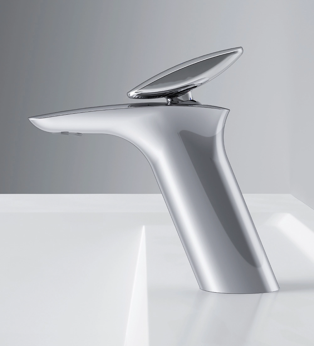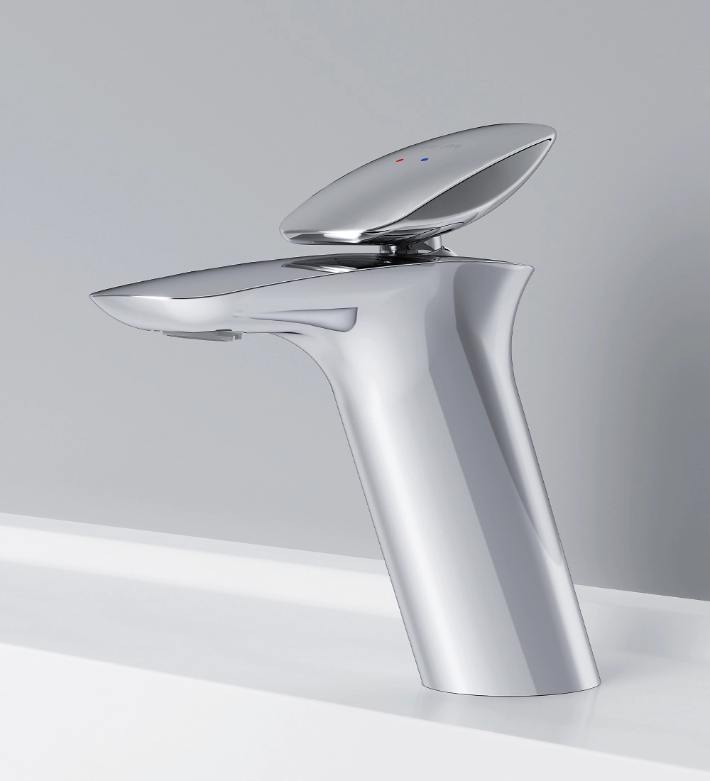 - Удобный наклон и плавный изгиб корпуса позволяют с комфортом использовать смеситель на высокой раковине.