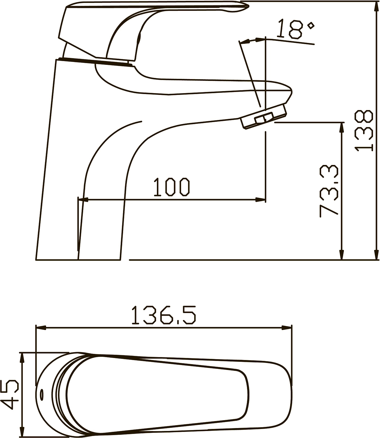 • Длина излива 100