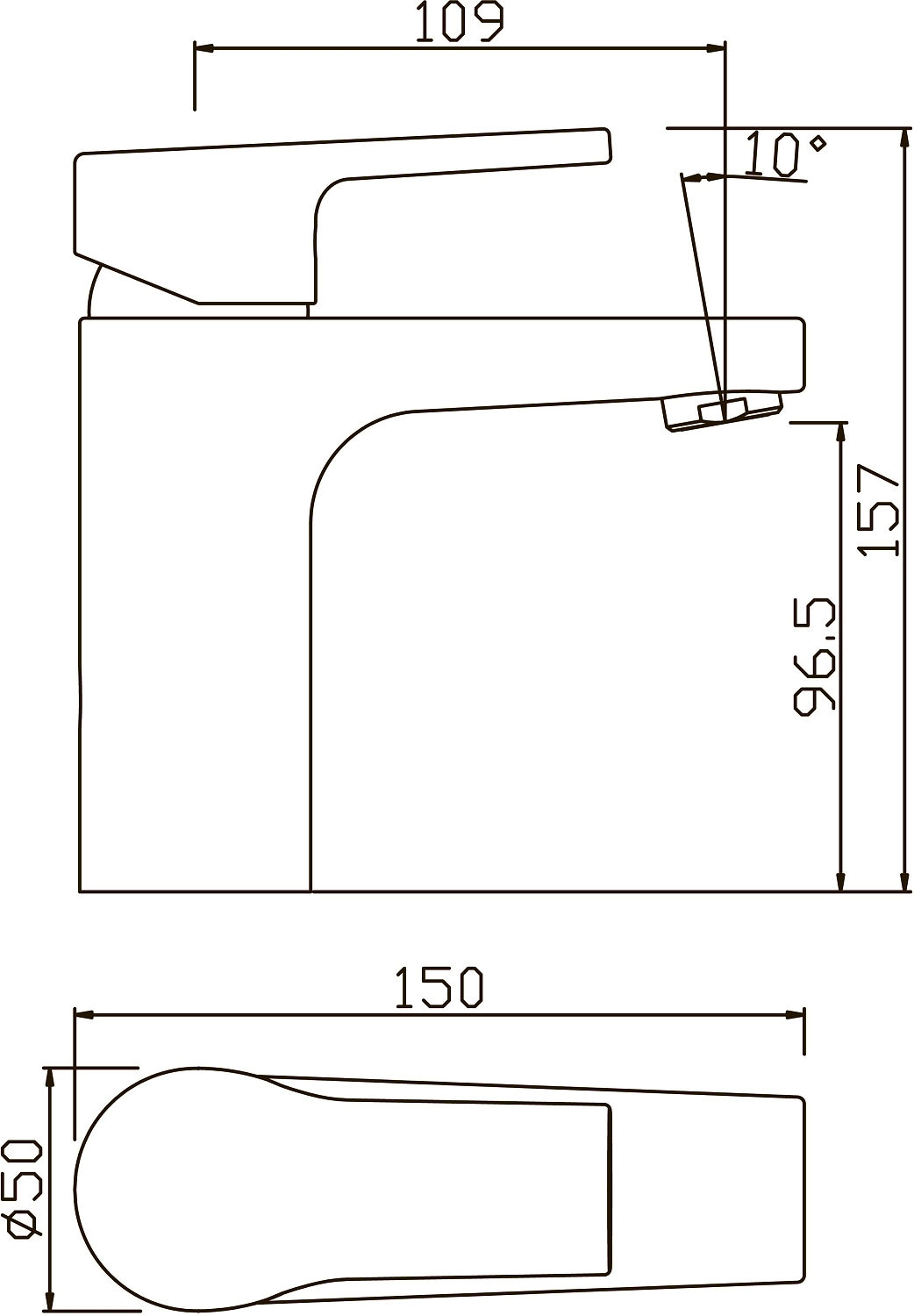 • Длина излива 109