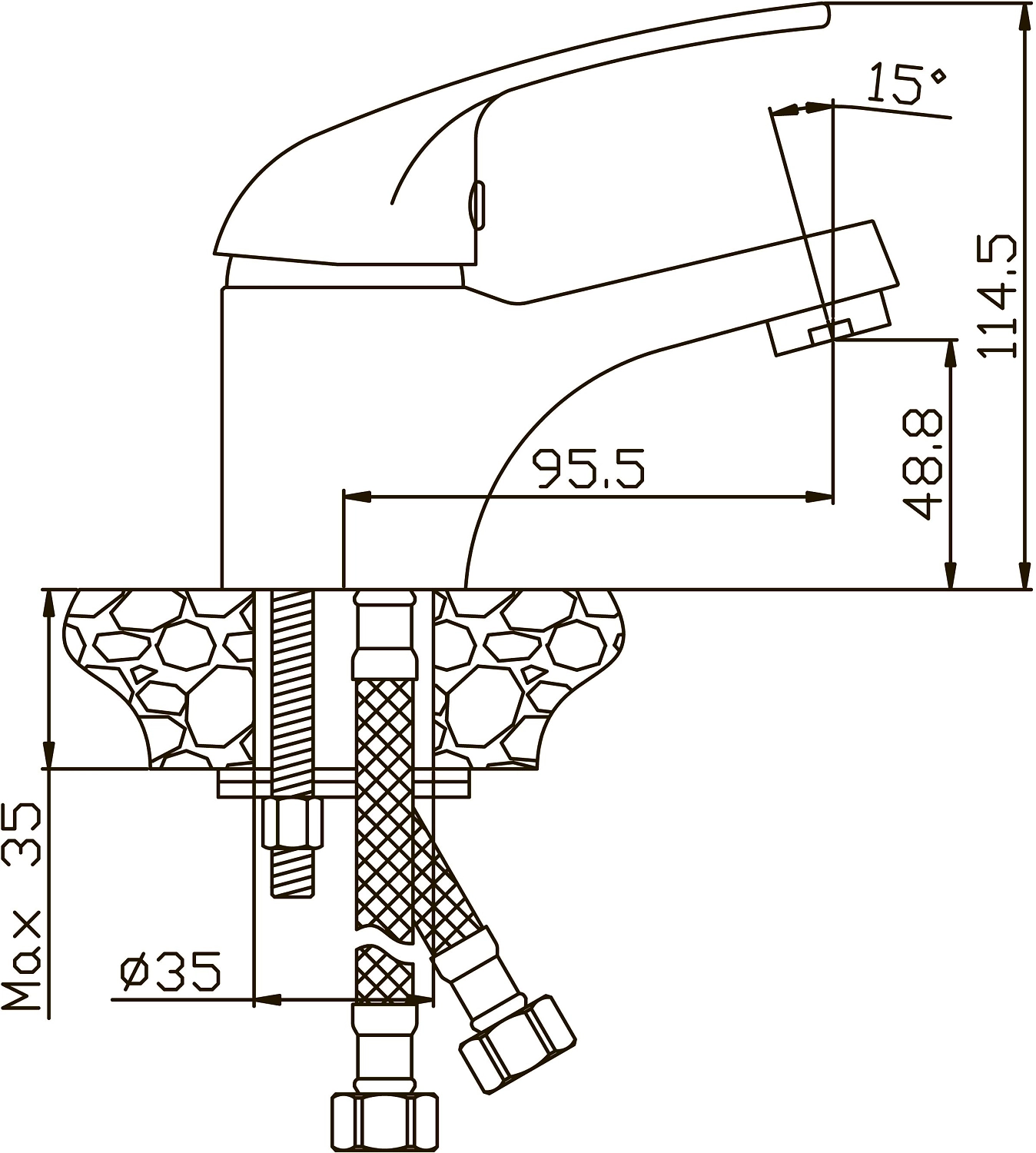 - - В комплектации – гибкая подводка, длина которой позволяет выполнить монтаж смесителя, комплект крепежа.