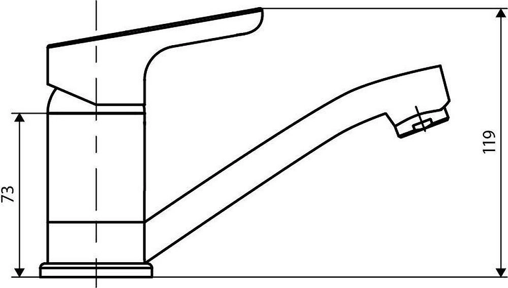 Модель имеет жесткий тип подводки, устанавливается горизонтально на одно отверстие.