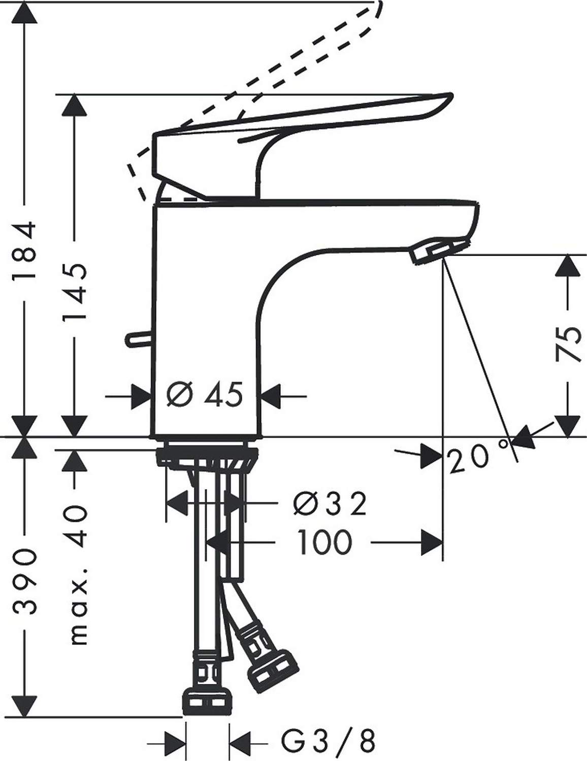 Смеситель для ванной комнаты Hansgrohe Logis E со сливным гарнитуром и пространством ComfortZone обеспечивает максимальную свободу движения в зоне умывания.