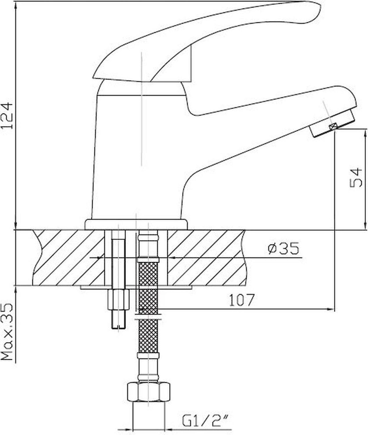 • Диаметр подводки 1/2"