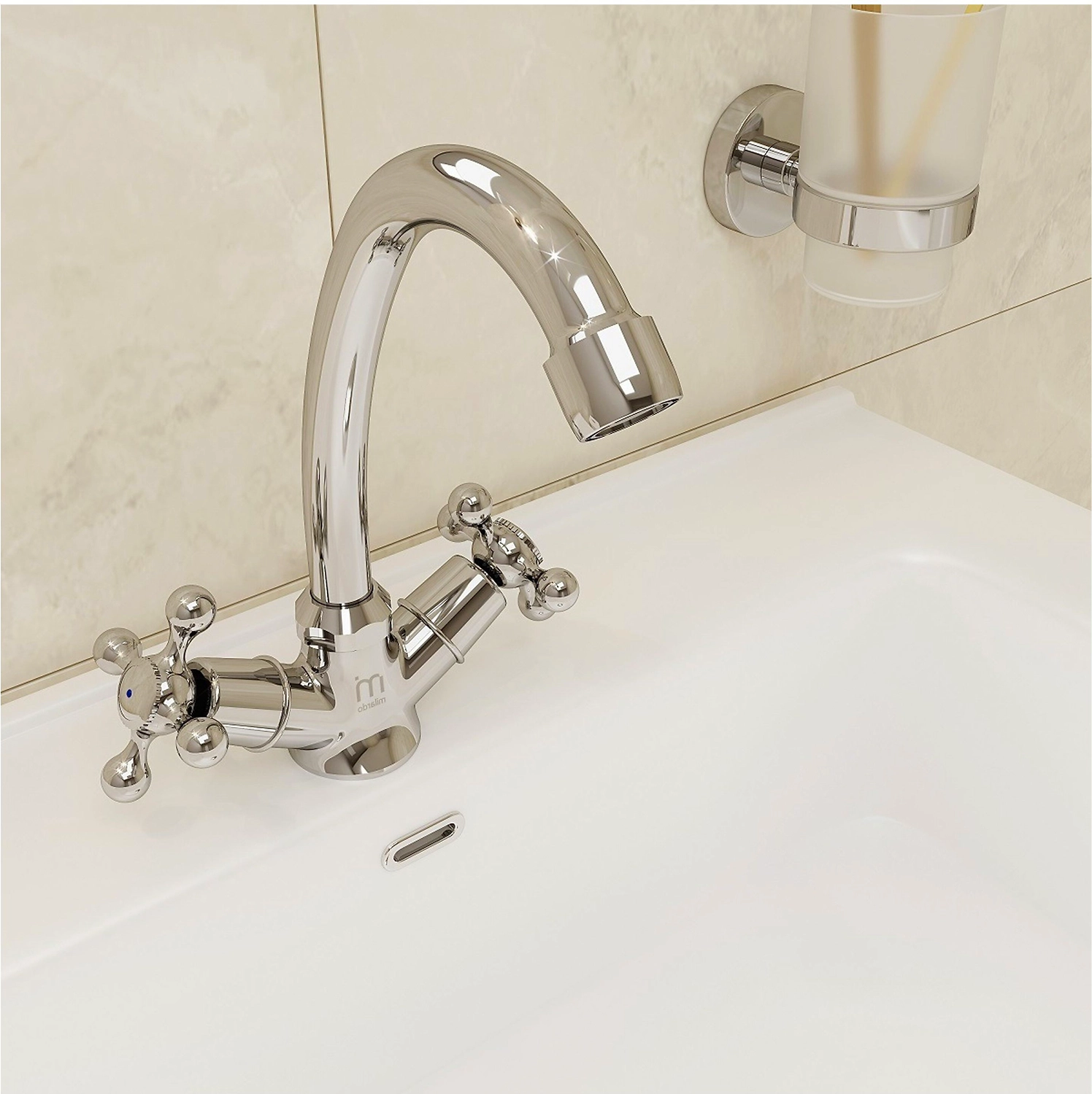 Смеситель для умывальника MILARDO DOUBLE изготовлен из высококачественной первичной латуни. Устойчив к коррозии и перепадам давления и температур.