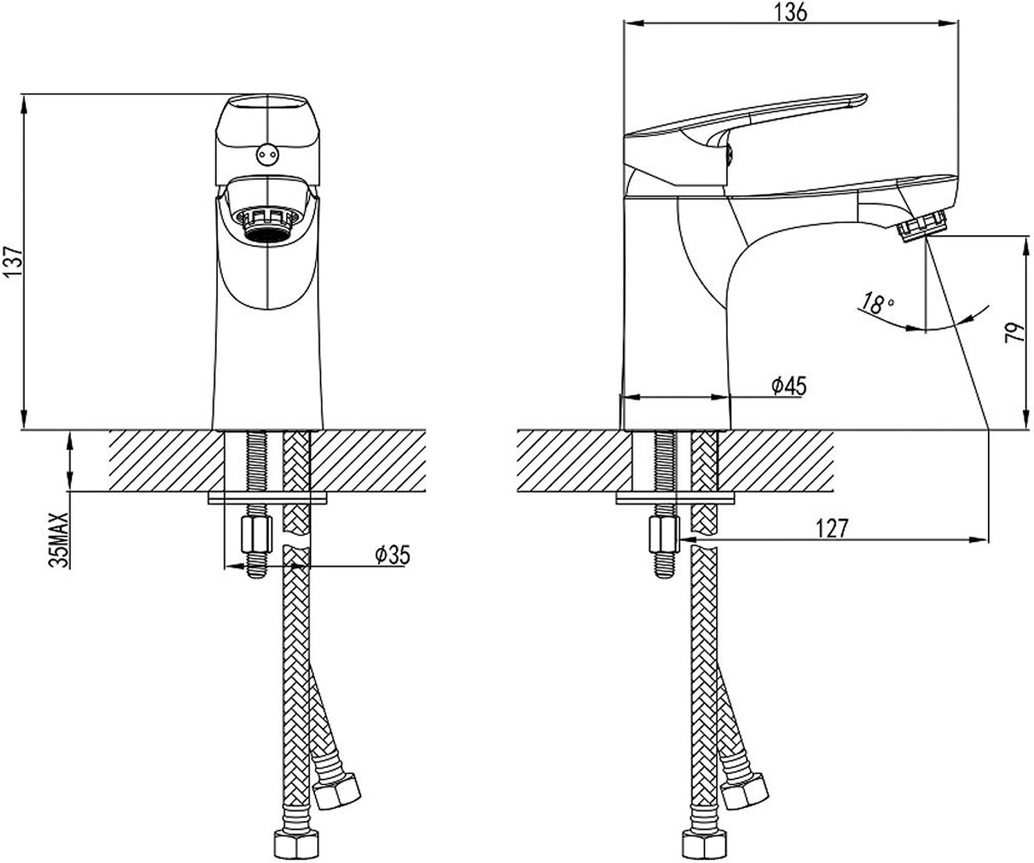• Диаметр подводки 1/2"