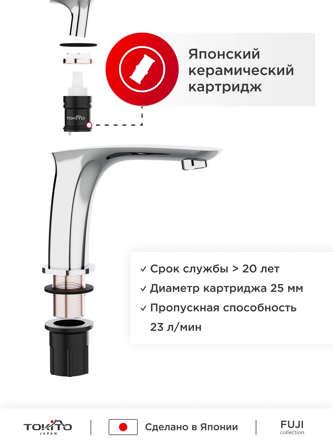 Вы стремитесь к совершенству и хотите создать неповторимый стиль в ванной? Ваш идеальный выбор – смеситель для раковины коллекции FUJI с безупречными изгибами, мягкими линиями и современным дизайном. Основание рычага управления плавно перетекает в корпус излива. Изящные линии смесителя созвучны традициям японской стилистики и архитектуры. Смеситель серии FUJI изготовлен из высококачественного латунного сплава. От коррозии его надежно защищает хромовое покрытие, обладающее зеркальным блеском. Керамический картридж способствует длительной бесперебойной работе сантехники.