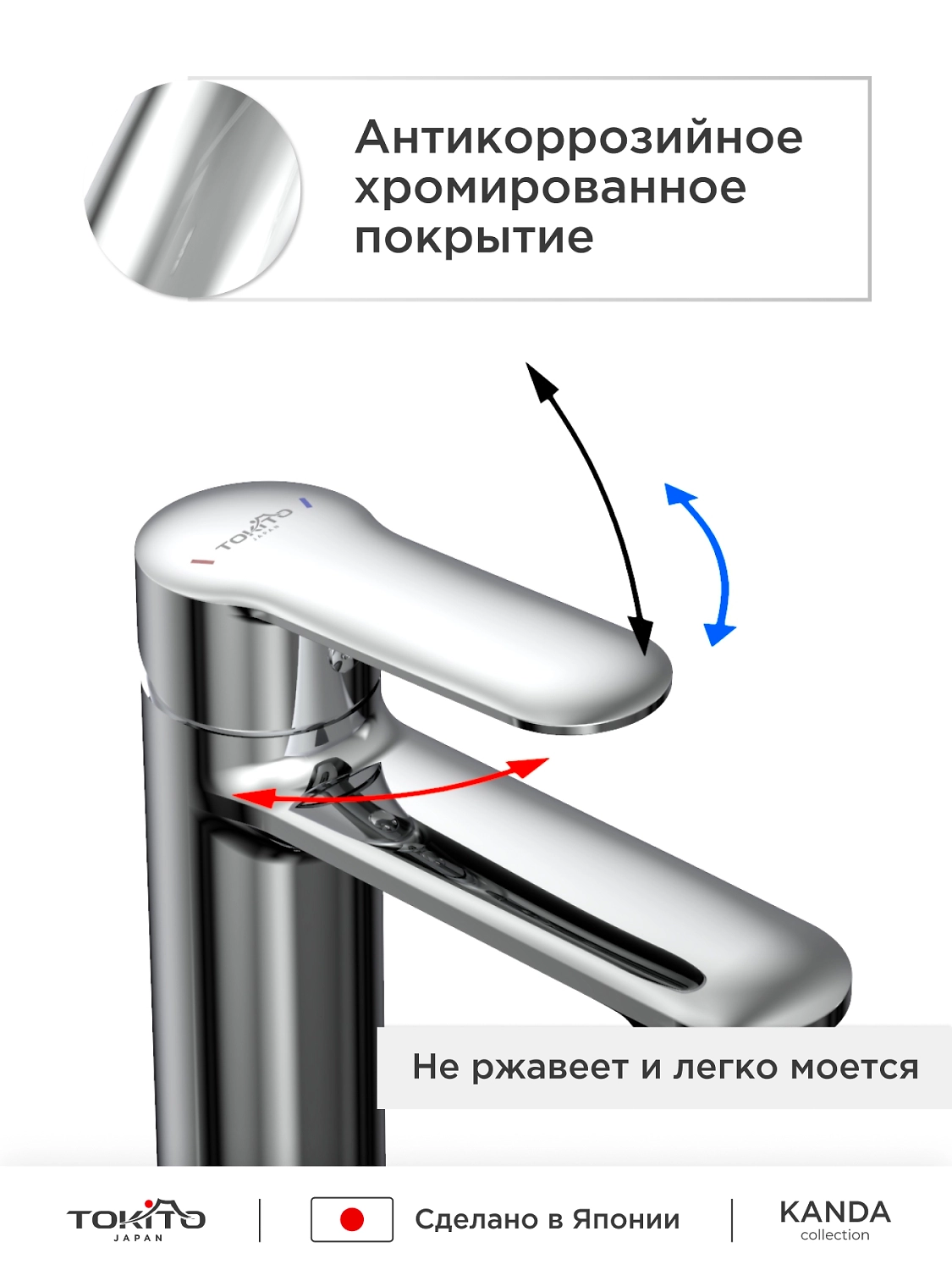 Хотите украсить свою ванную стильным дизайнерским смесителем? Тогда ваш выбор – смеситель для раковины серии KANDA от японского бренда TOKITO. Идеальные прямые линии, округлые формы, лаконичность и утонченная красота – главные достоинства этой модели. Смеситель гармонично сочетается с любым современным интерьером и подчеркивает его эстетическую привлекательность. Хромовое покрытие корпуса не только защищает изделие от коррозии, но и создает ощущение кристальной чистоты благодаря глянцевому блеску поверхности. Управление при помощи одного рычага делает модель комфортной в эксплуатации.