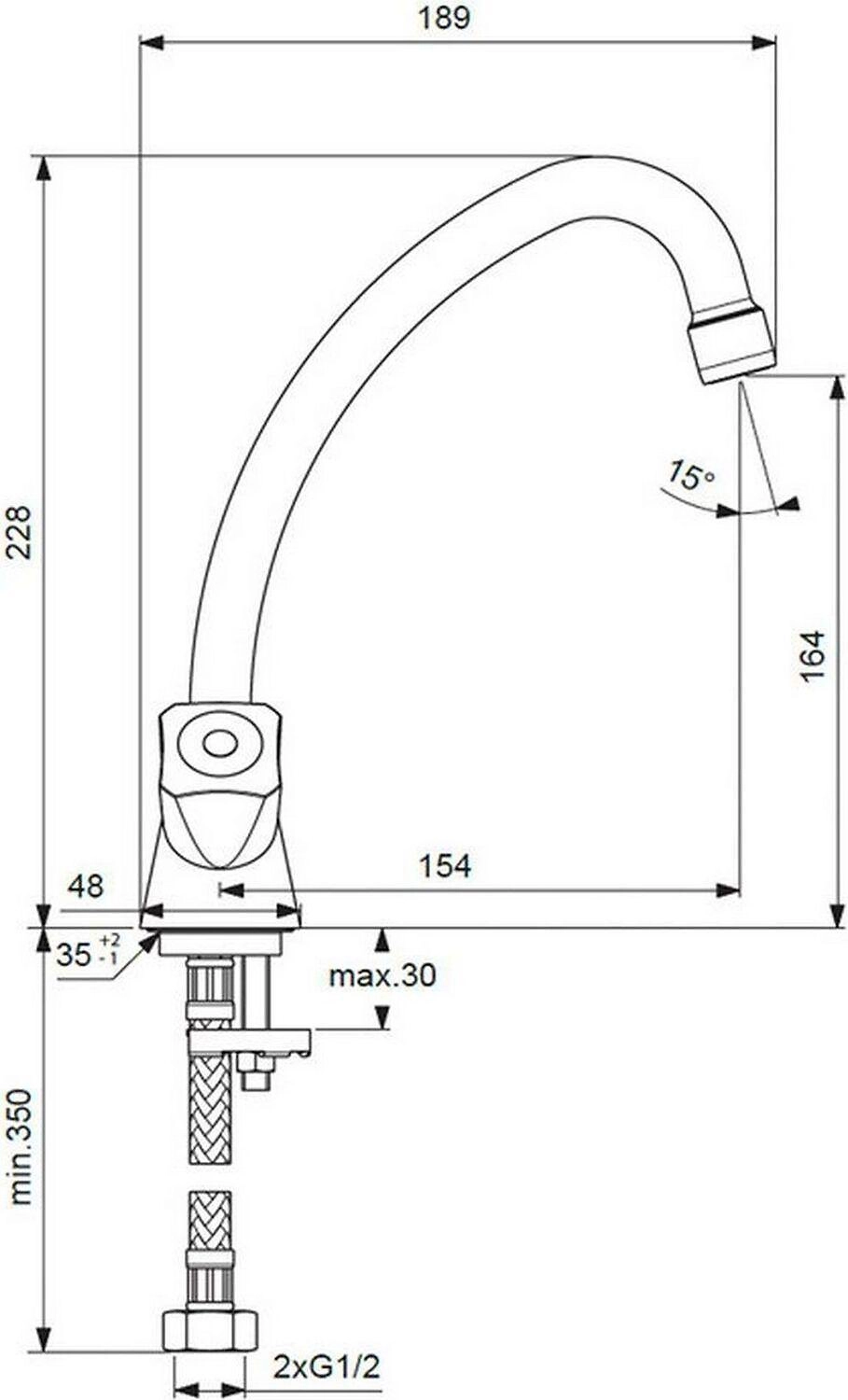 Смеситель для раковины VIDIMA PRACTIC BA227AA с двумя вентилями и поворотным изливом имеет традиционную форму. Классическая модель подходит для умывальника в ванной и кухонной мойки.