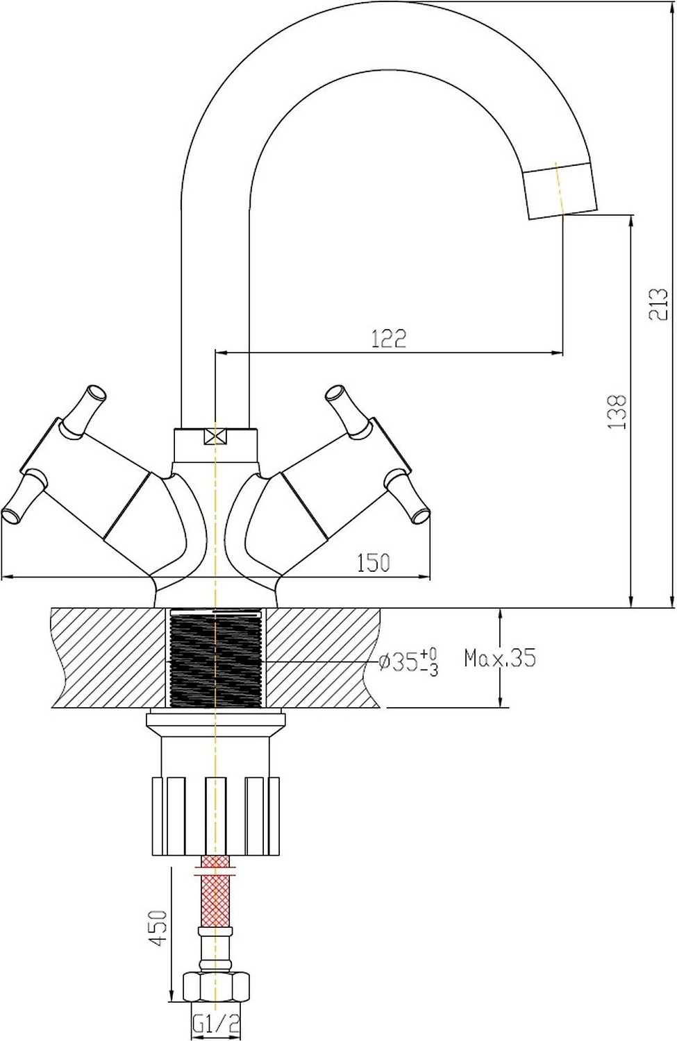 • Диаметр подводки 1/2"