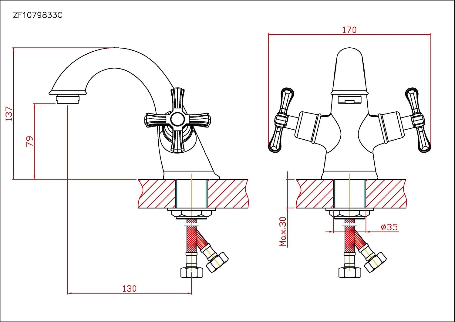 • Диаметр подводки 1/2"