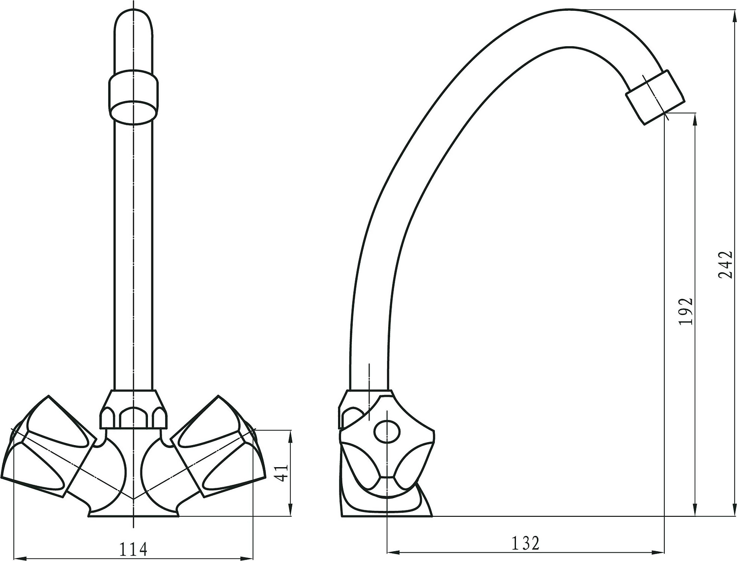 - За счет изогнутой формы излива модель подойдет для раковин с широким бортом.