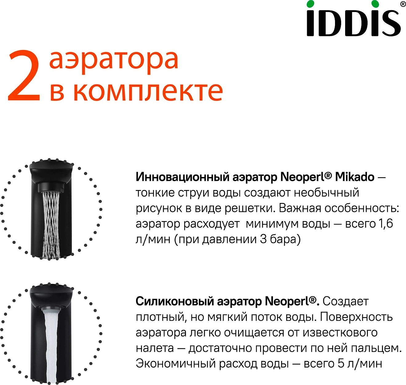 Смеситель для умывальника с инновационным управлением Push Control IDDIS ALFA изготовлен из высококачественной первичной латуни. Устойчив к коррозии и перепадам давления и температур. Покрытие полностью соответствует европейским стандартам качества. Благодаря гладкой внутренней поверхности, рассекателям в водозапорных механизмах и силиконовому аэратору смеситель имеет минимальный уровень шума. Инновационный аэратор Neoperl Mikado превращает обычный поток воды из-под крана в красивое зрелище: тонкие струи воды создают необычный рисунок в виде решетки. Керамические нажимной картридж. Высота излива 145 мм, длина излива 109 мм. В комплектацию входит: гибкая подвожка, крепеж.