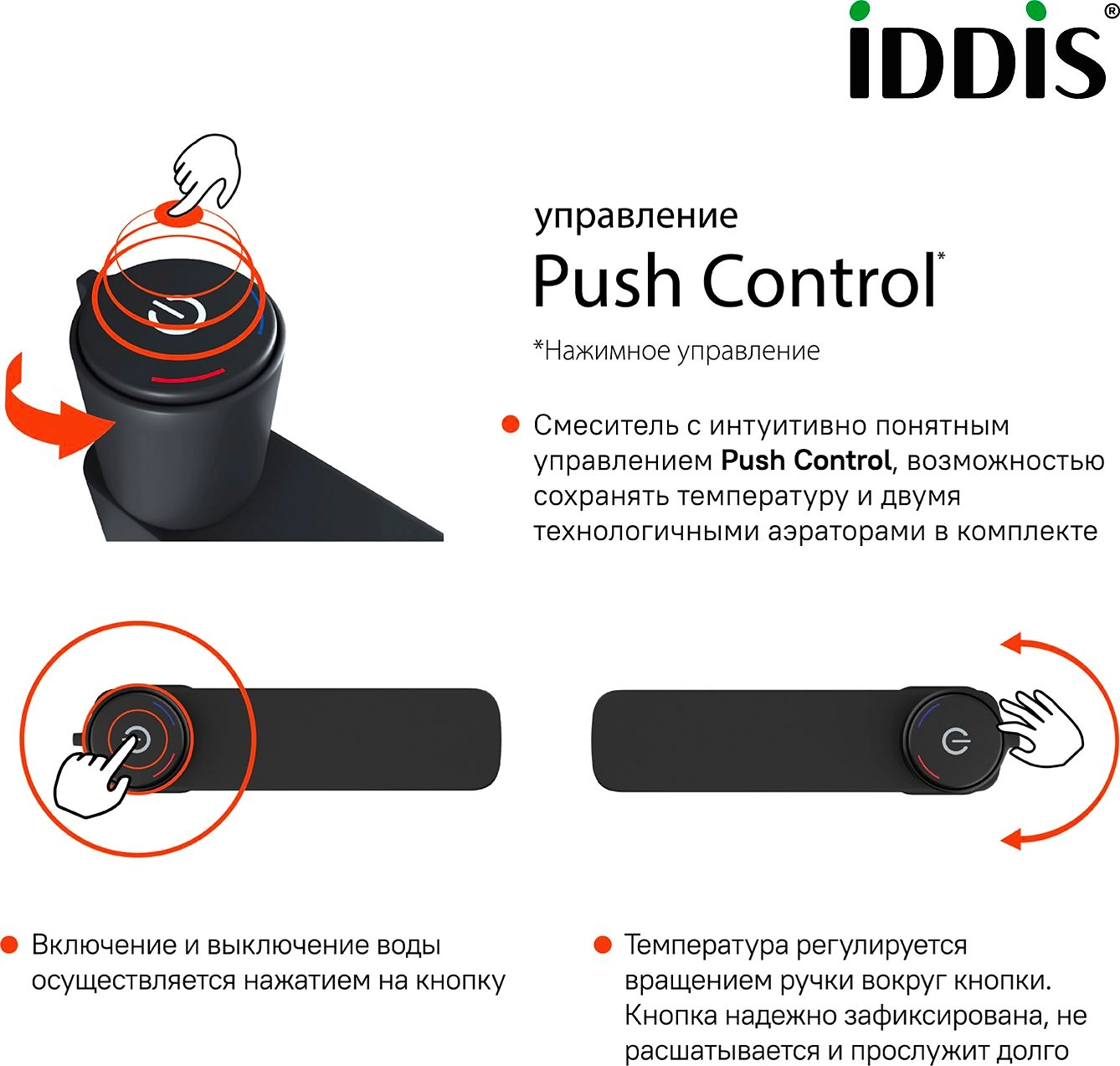 Смеситель для умывальника с инновационным управлением Push Control IDDIS ALFA изготовлен из высококачественной первичной латуни. Устойчив к коррозии и перепадам давления и температур.