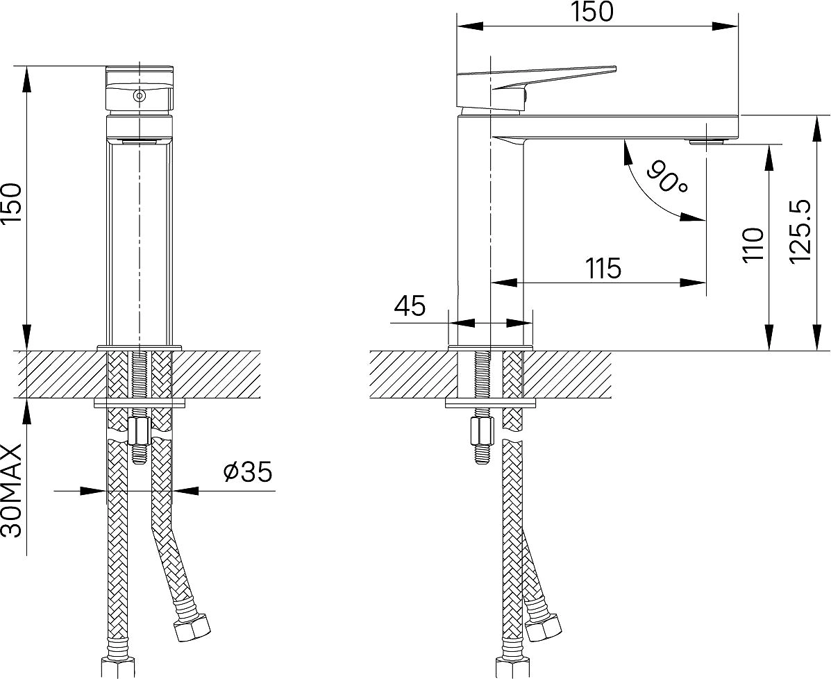 • Диаметр подводки 1/2"