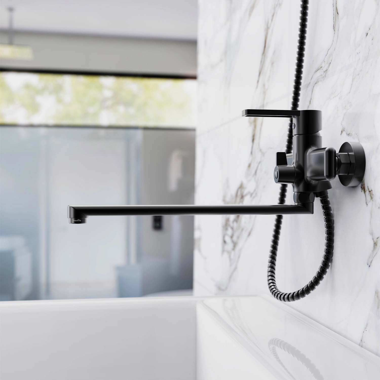 Каждые хозяева мечтают видеть свою ванную комнату идеальной. Смеситель для ванной из новой коллекции KUDO придаст изящества любому помещению. Плавные изгибы длинного излива добавляют интерьеру элегантности. А черный матовый цвет идеален для любого дизайна помещения. Такой смеситель сочетается с элементами из любого материала. Устанавливается смеситель легко, по стандартной системе. И ухаживать за ним просто, достаточно воспользоваться влажной тряпочкой. Каждая мелочь в ванной комнате заслуживает внимания, смеситель из новой коллекции TOKITO дополнит общий образ!