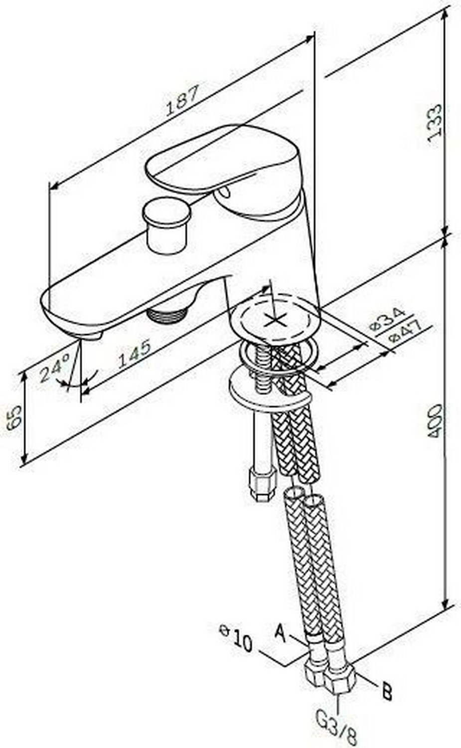 • Диаметр подводки 3/8"