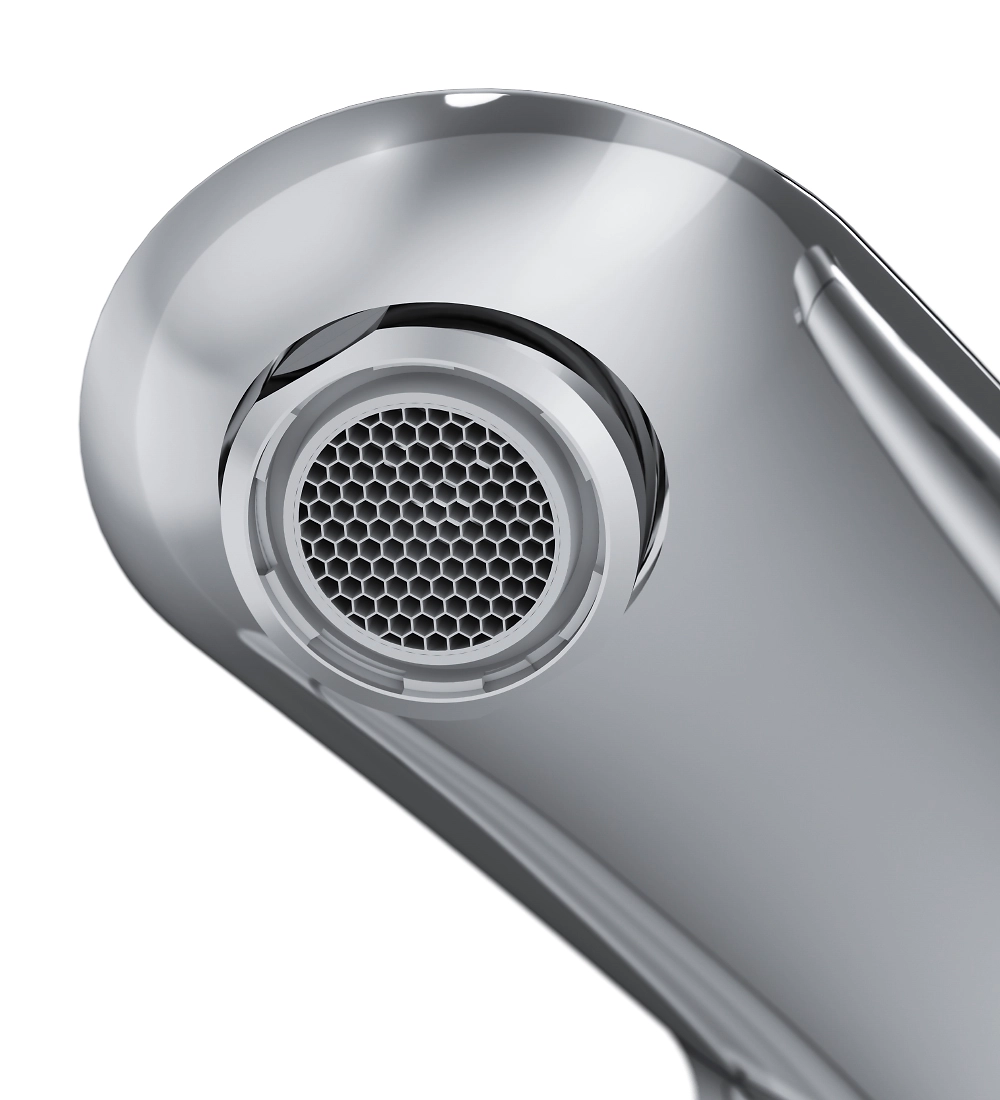 - Встроенный аэратор смягчает струю, избавляет от брызг и способствует экономии воды.