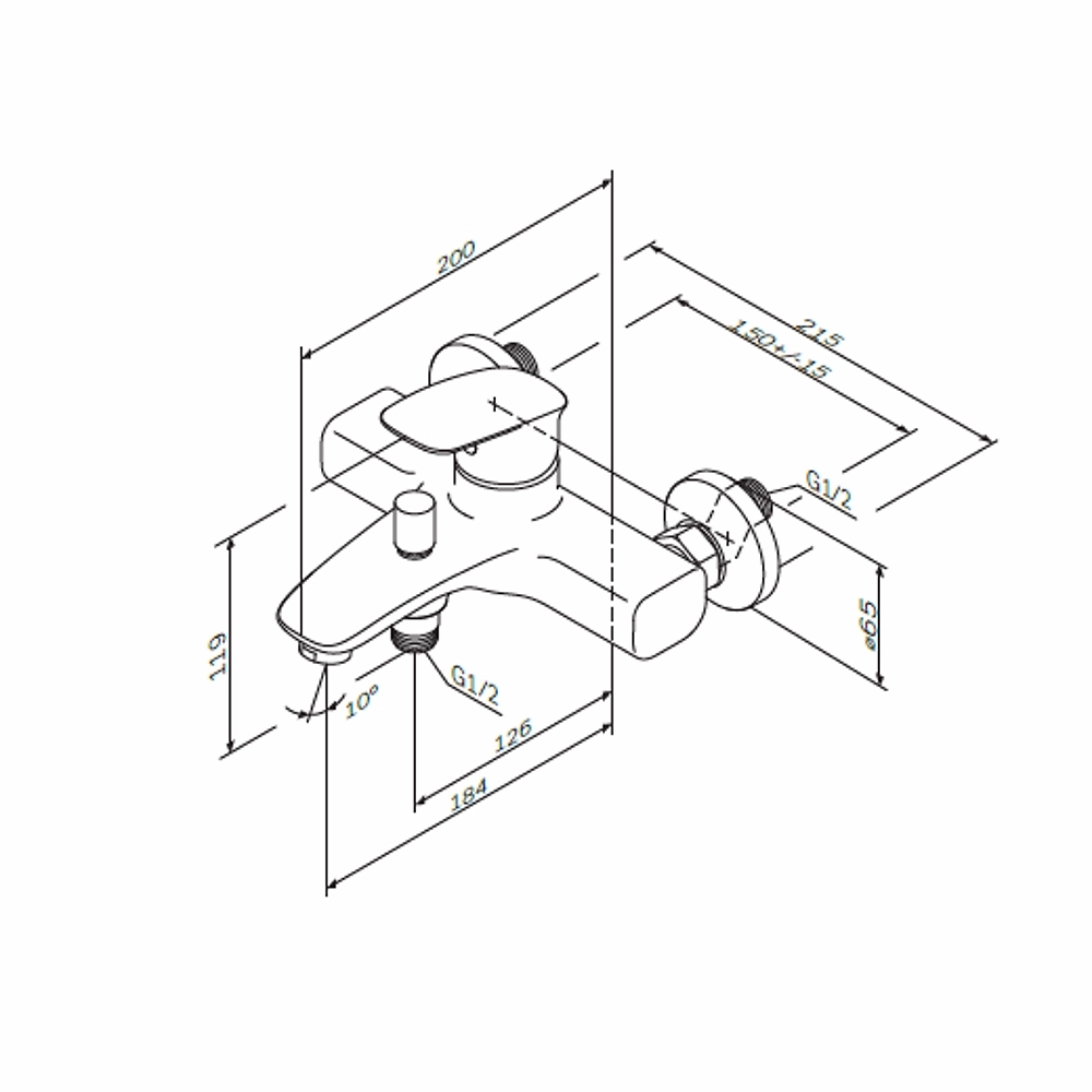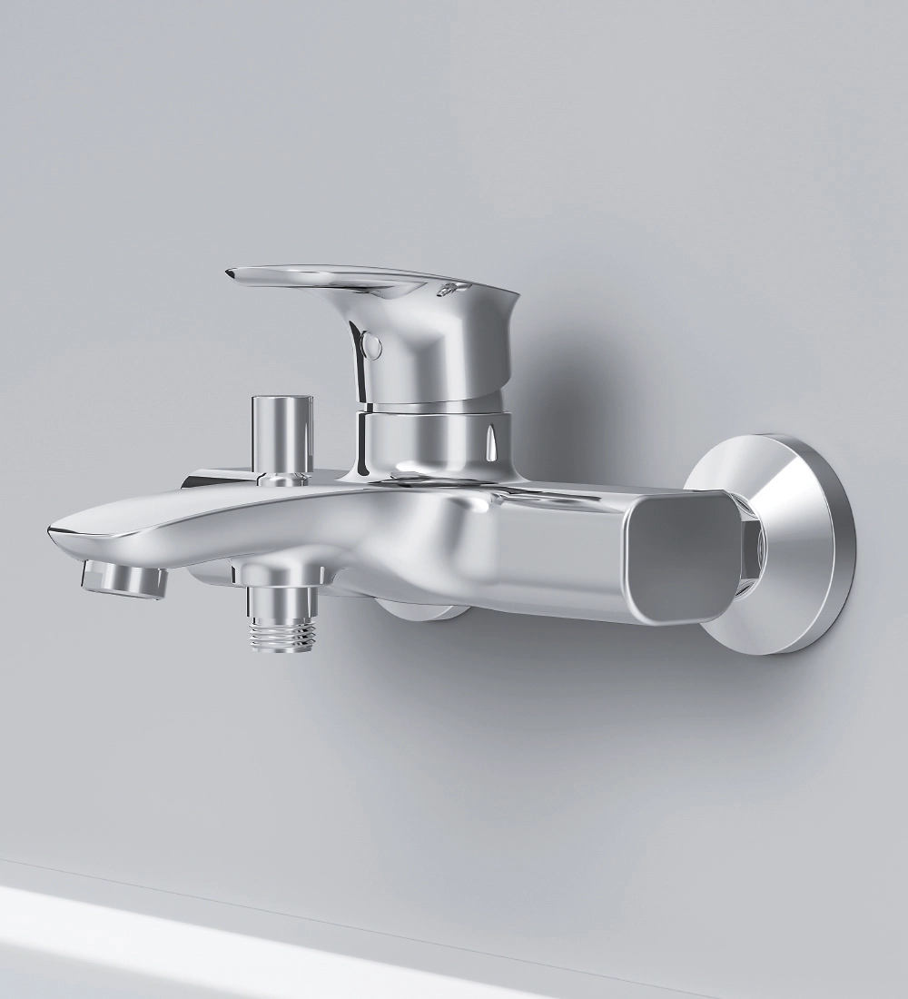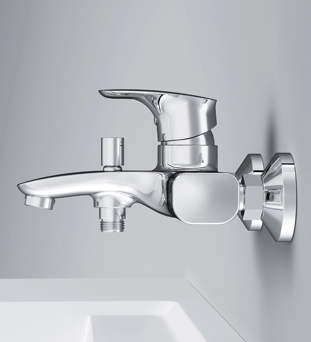 Смеситель AM.PM Spirit V2.1 устанавливается на стену с помощью S-образных эксцентриков, используется для подачи воды на ванну и душ.