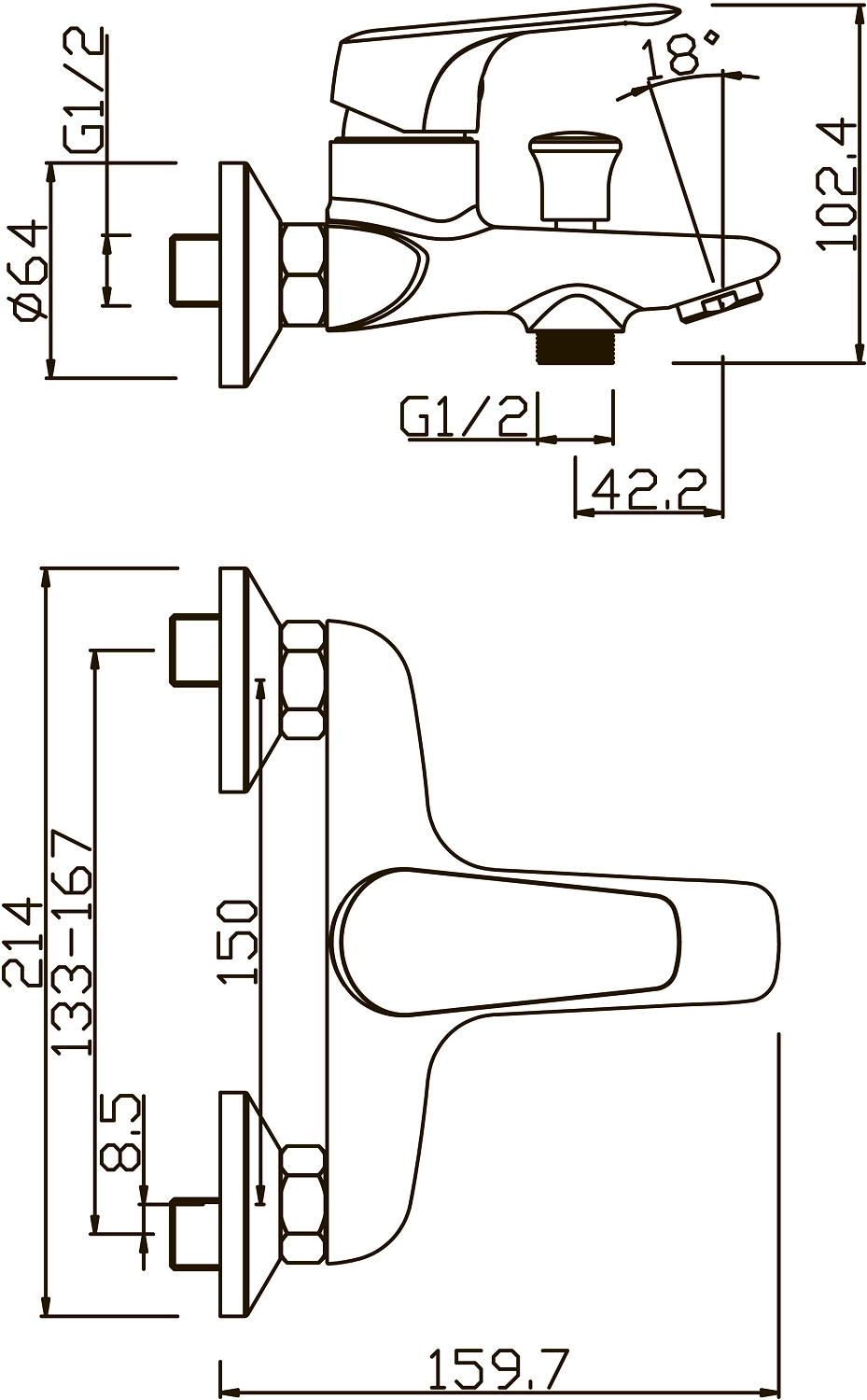 • Длина излива 160