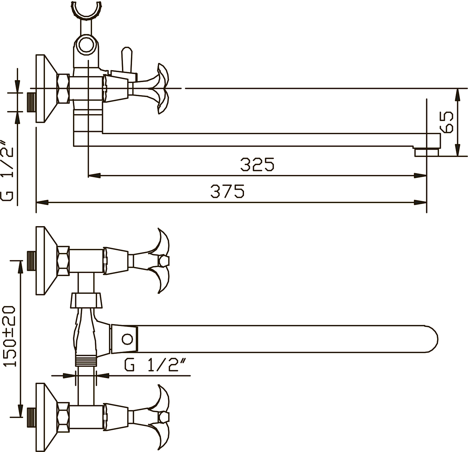 - - Длинный поворотный излив 325мм – можно использовать и для ванны и для раковины.