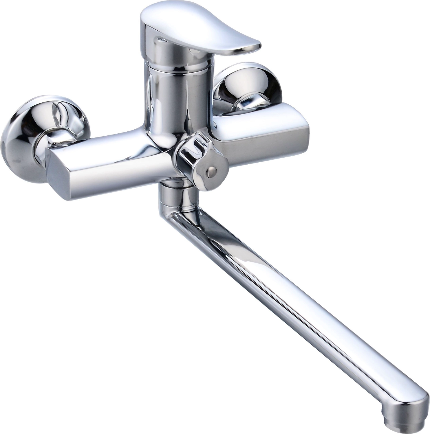 Смеситель монтируется на стену с помощью эксцентриков, входящих в комплект. Изделие служит для направления и регулирования температуры и мощности потока воды.