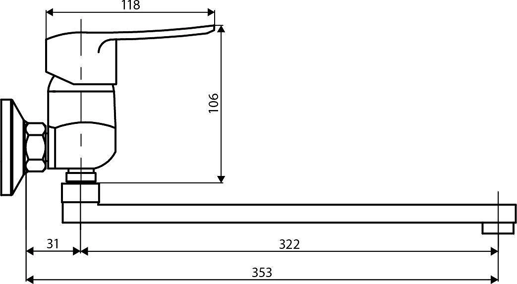\- Длина поворотного излива позволяет использовать один смеситель для ванны и рядом стоящей раковины.