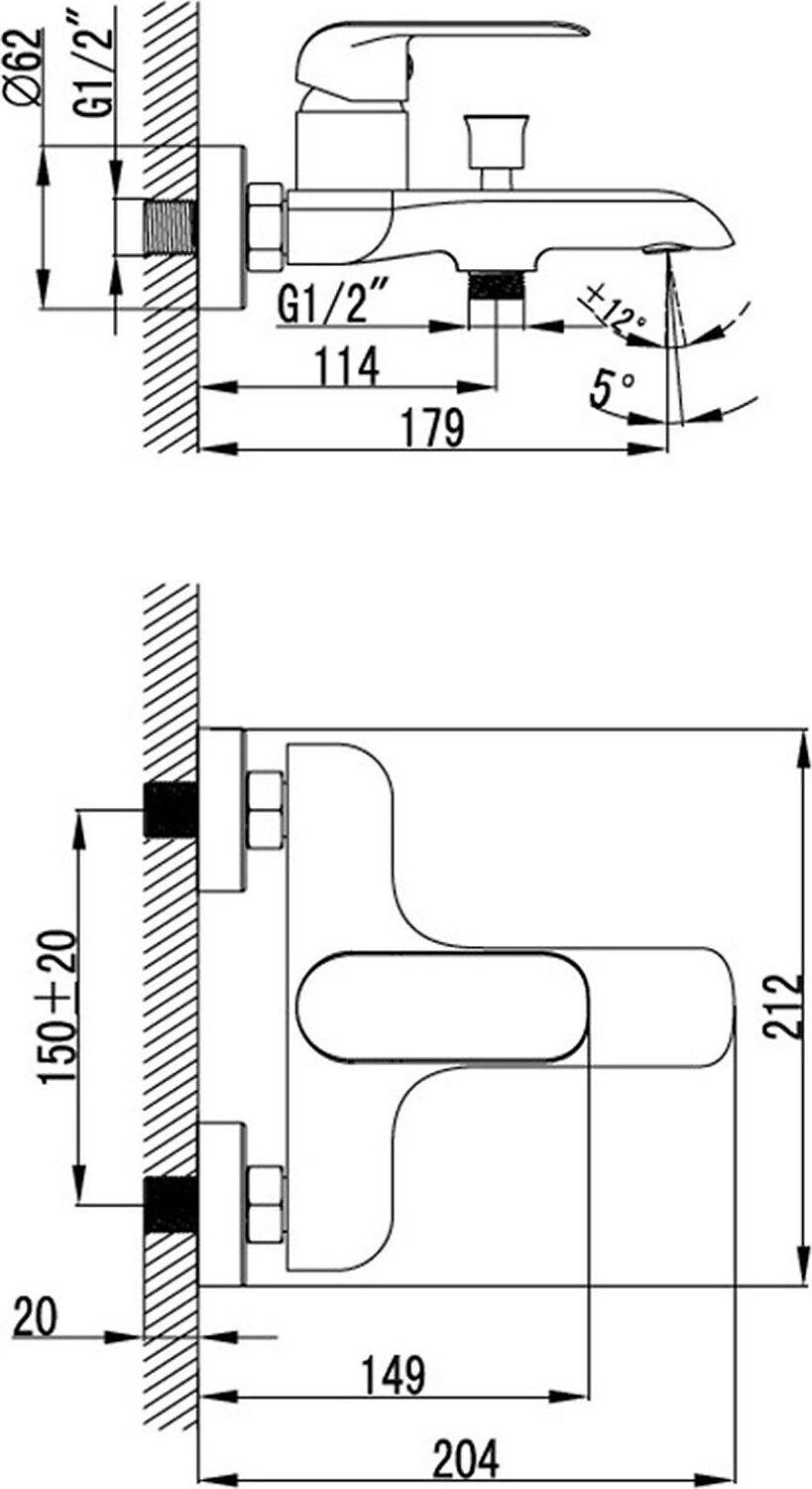 - Переключение между режимами “ванна/душ” осуществляется с помощью вытяжного, фиксируемого дивертора.