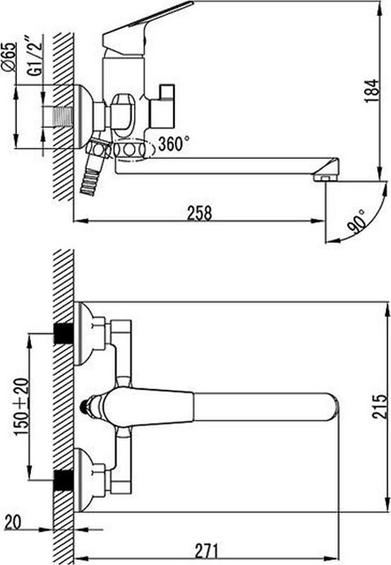Смеситель NELSON предназначен для настенного монтажа над ванной. Лаконичный дизайн делает модель украшением интерьера.