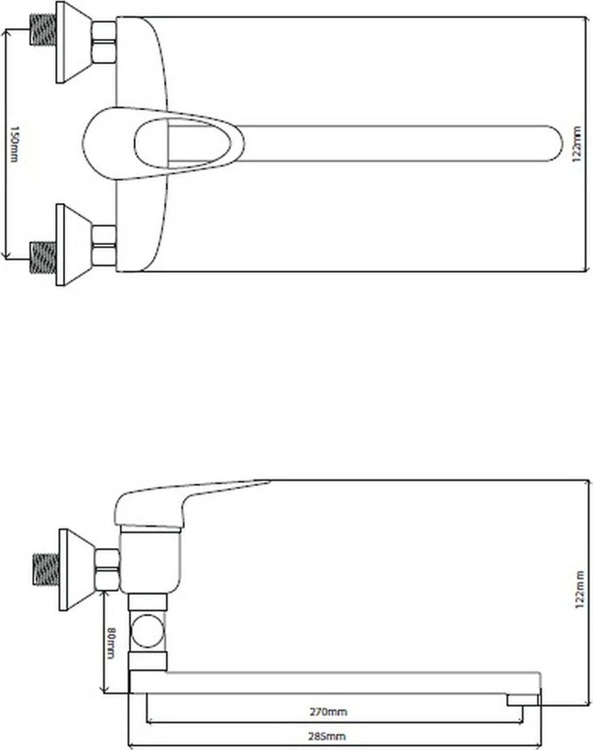 Смеситель WasserWelt Komfort монтируется на стену с помощью стандартного типа крепления (эксцентриков).