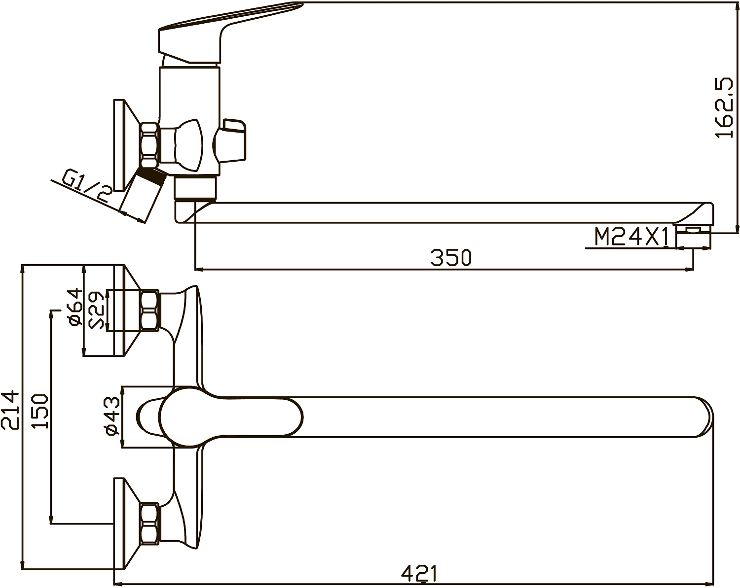 • Длина излива 350