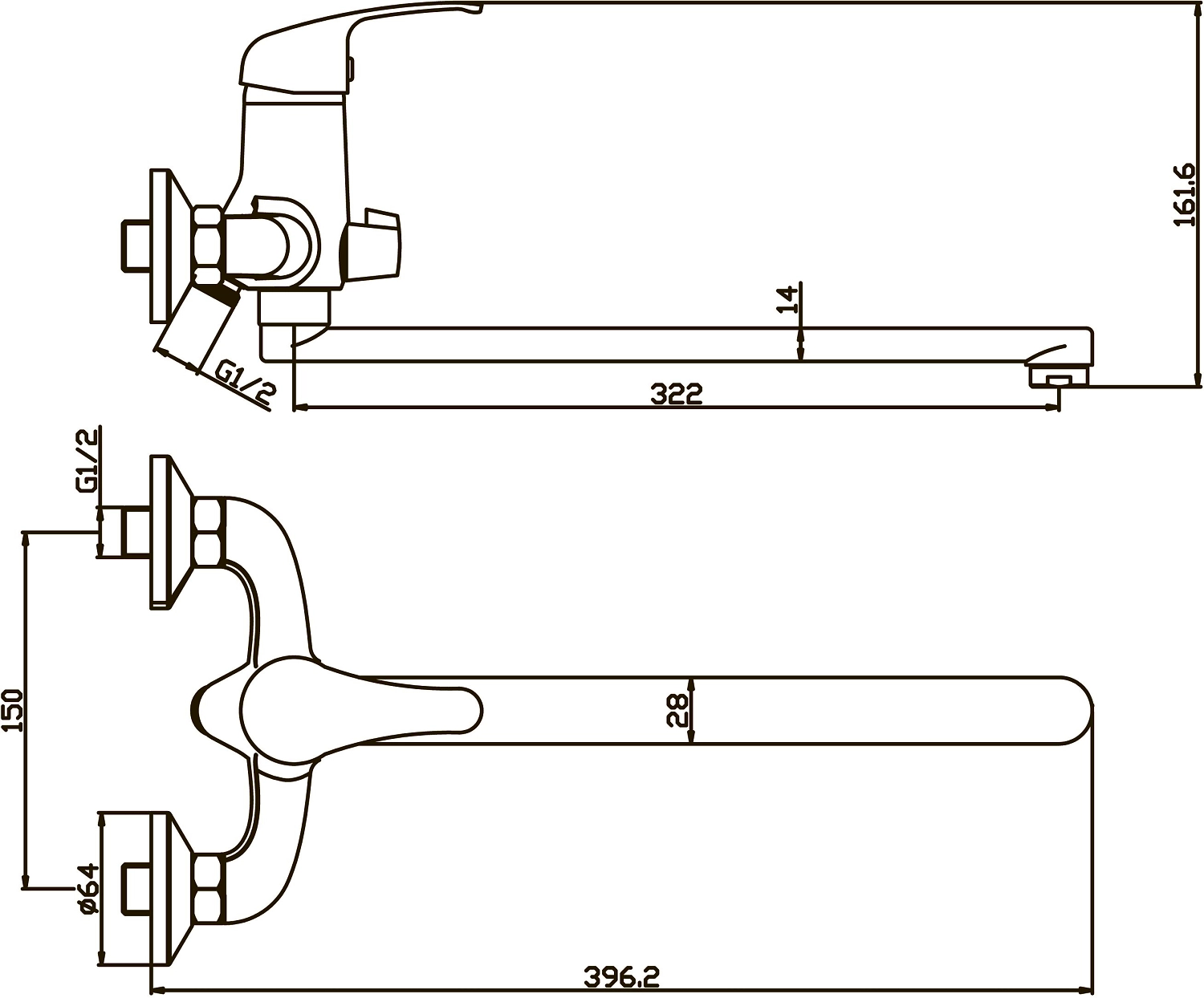 9. - Длинный поворотный излив 322мм – можно использовать и для ванны и для раковины.